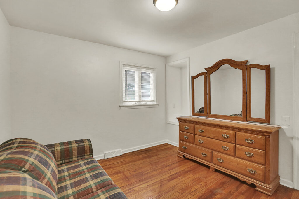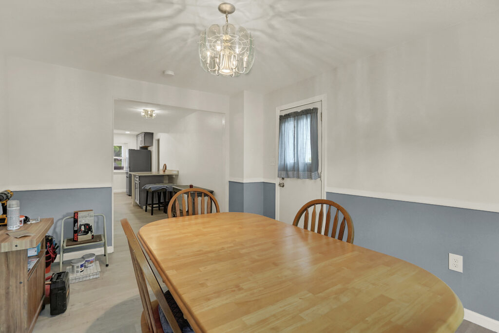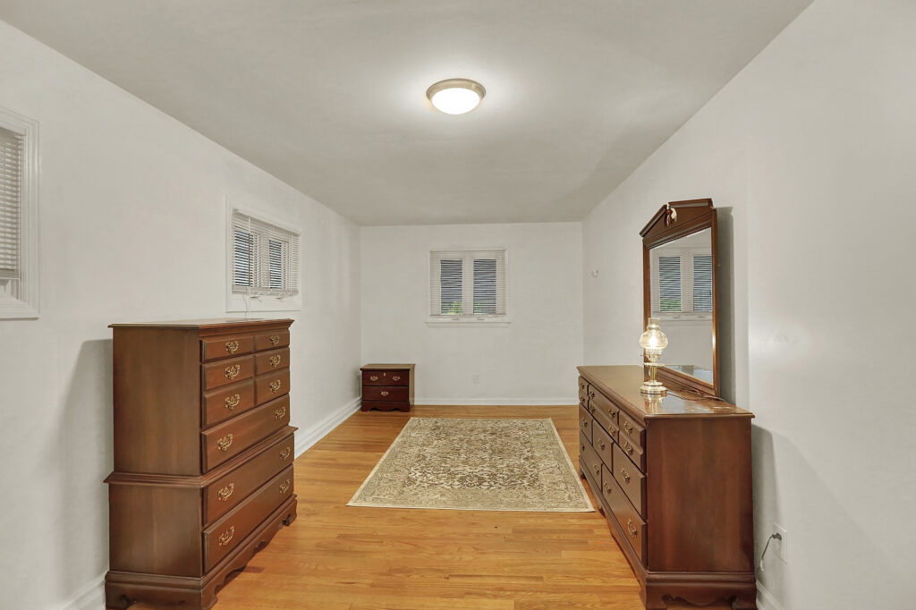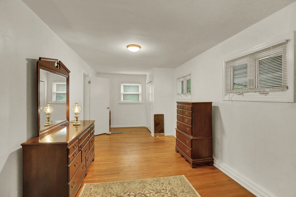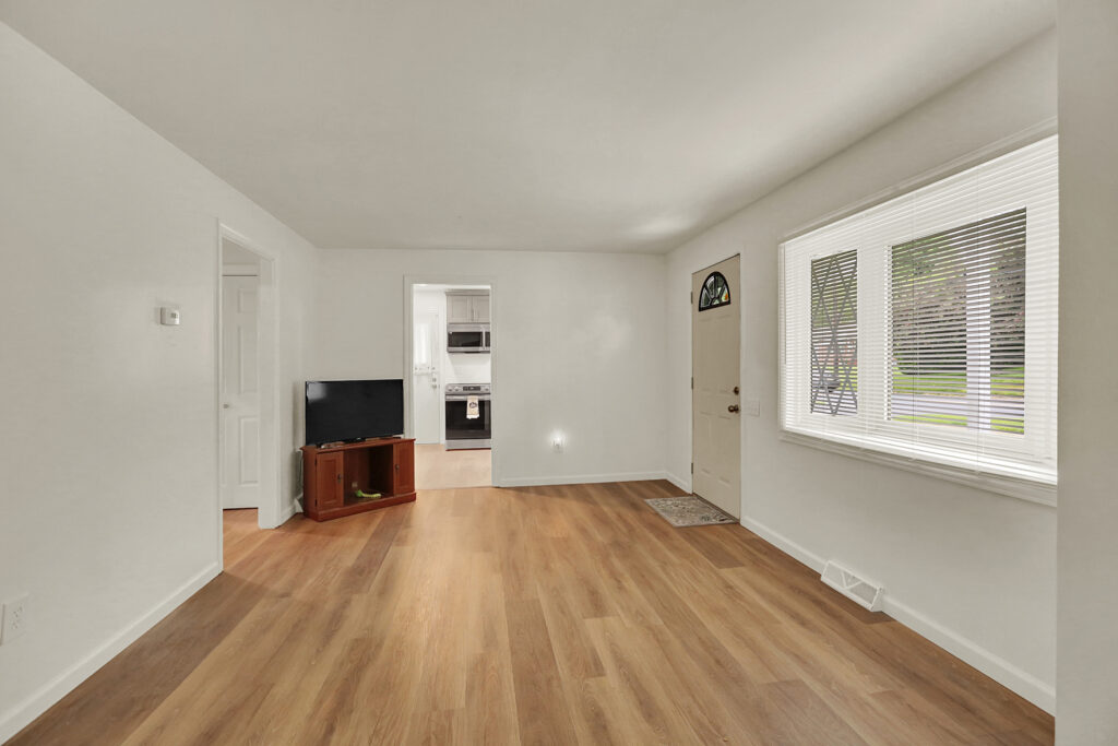 The entire interior was updated from floor to ceiling. The home features refinished original hardwoods paired with new luxury vinyl plank and brand-new carpet in the bedrooms for a fresh, cohesive look. We installed custom kitchen cabinetry by Craft-Maid, quartz countertops from Classic Rock, and all-new fixtures in the kitchen and bathroom. Every surface, from trim to walls, received a clean coat of Sherwin-Williams paint, creating a bright finish.